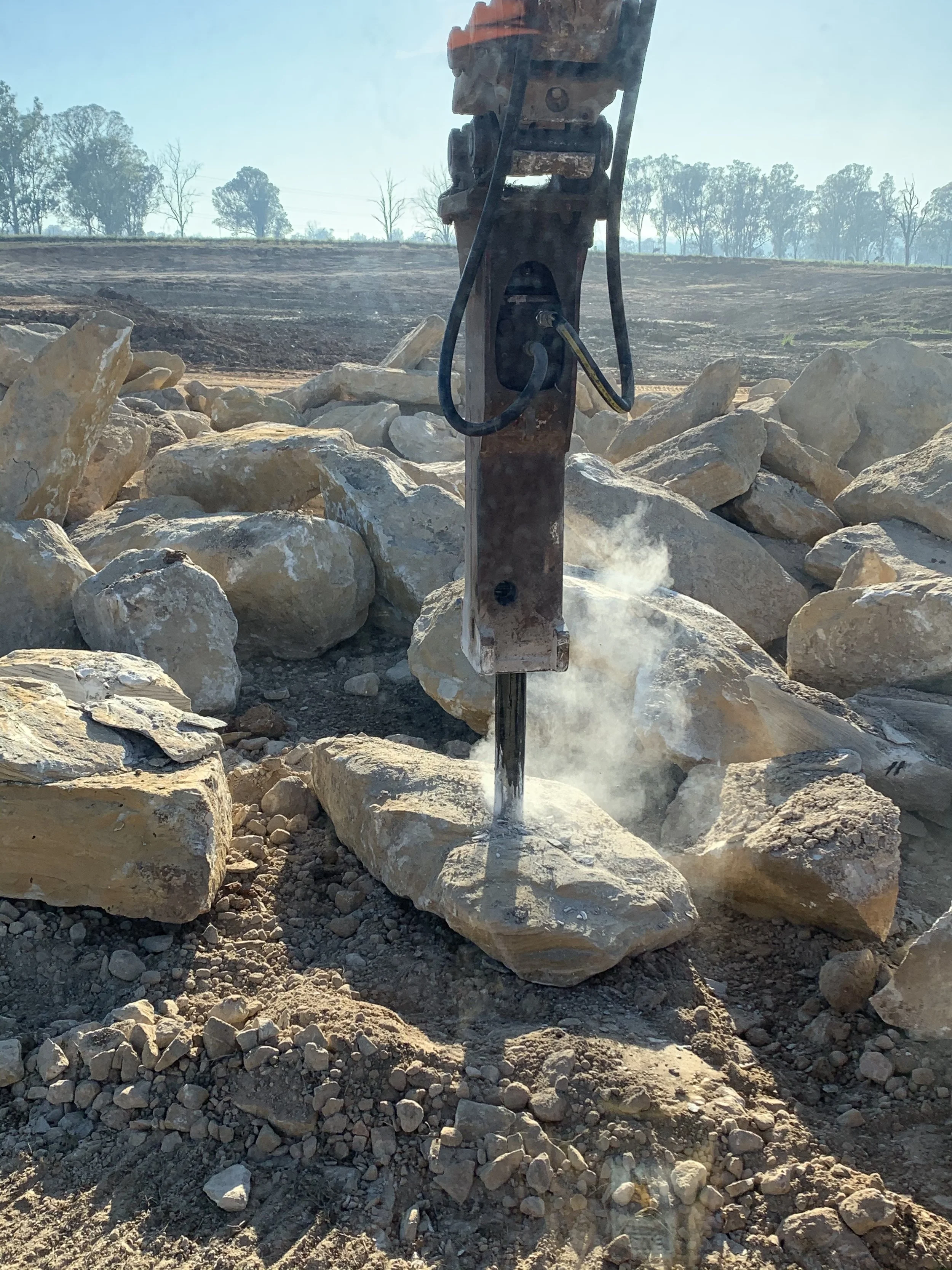 Rock hammering and scrap rock walls